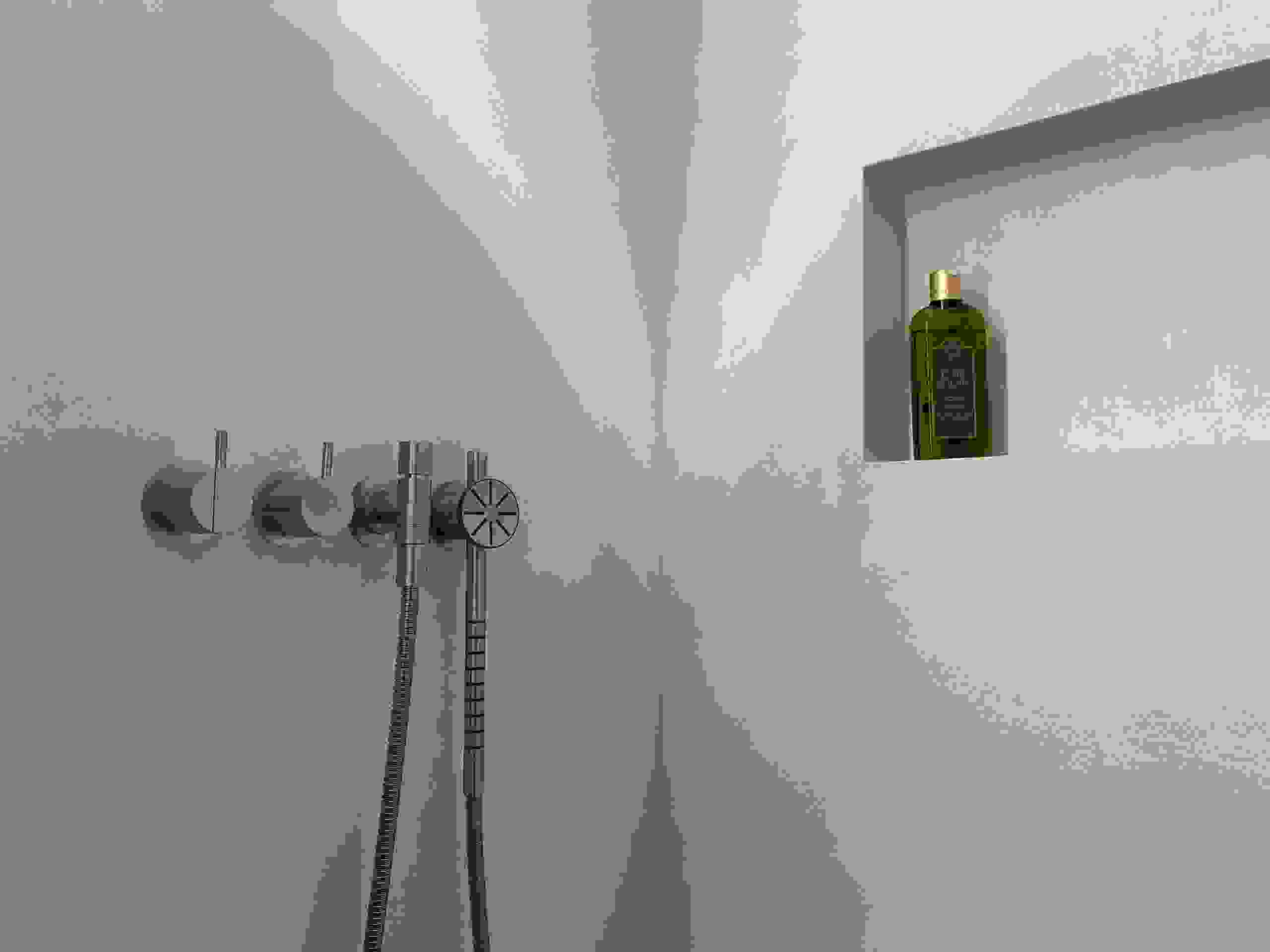 Die Nasszellen wurden beim Badumbau sorgfältig und fachmännisch von Hand im Farbton Wolke 320 gespachtelt. Mit seiner unverwechselbaren Strukturoberfläche verleiht der Belag einen einzigartigen Charakter. Die Spachteltechnik, mit der Naturofloor an Wänden und Böden aufgetragen wird, ist stets auch eine persönliche Handschrift der ausführenden Fachhandwerkerin oder Fachhandwerker.